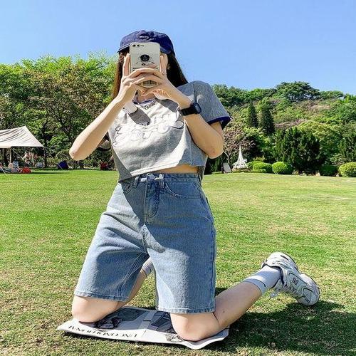 [옷자락]여성 카고 반바지 와이드핏 워싱 5부 여름 청바지