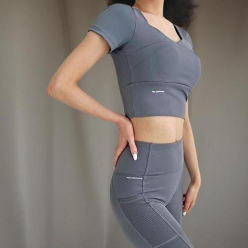 [신상오픈런]여성 스판 절개 반팔 티셔츠와 5부 레깅스 세트