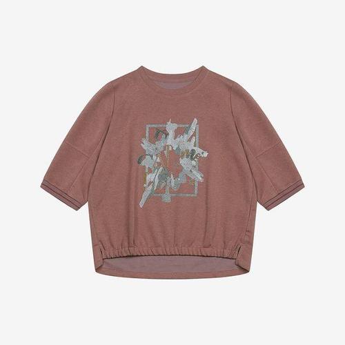 [신상오픈런]여성용 세미크롭 5부 소매 캐주얼 맨투맨 스웨트셔츠