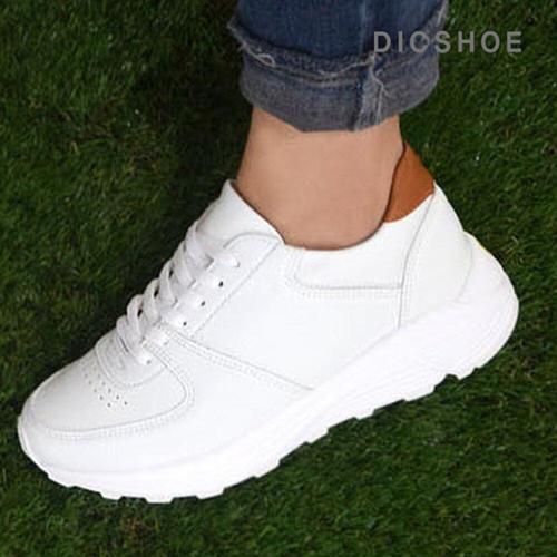 순이의신발장 5cm 키높이 발편한 통굽 여성 화이트 스니커즈 흰색 가죽 여자 운동화
