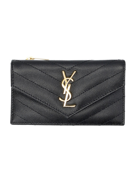 구템즈 25FW 생로랑 금장 모노그램 마틀라세 플랩 카드지갑 612808 BOW01 1000