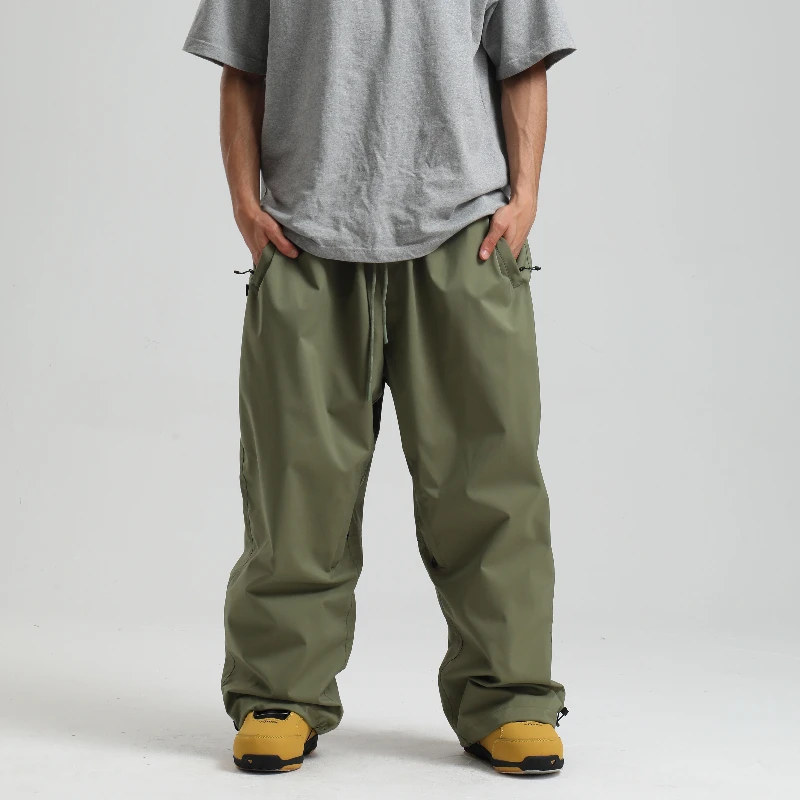 새로운 헐렁한 방풍 남자 솔리드 여성 스키 바지 방수 느슨한 후드 스키 Strides 야외 스포츠 성인 통기성 바지