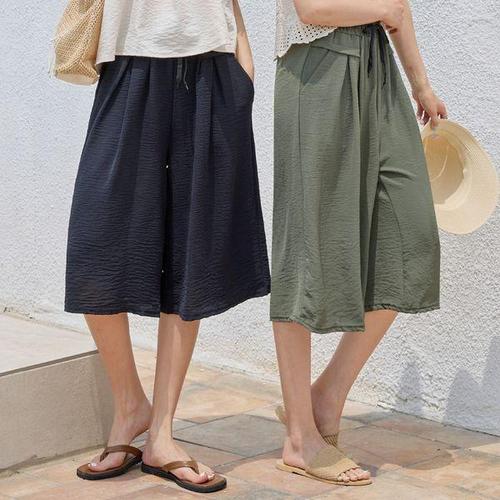 [모노무드]모노무드 여자 여름 시원한 와이드 린넨 7부바지 크롭 통바지