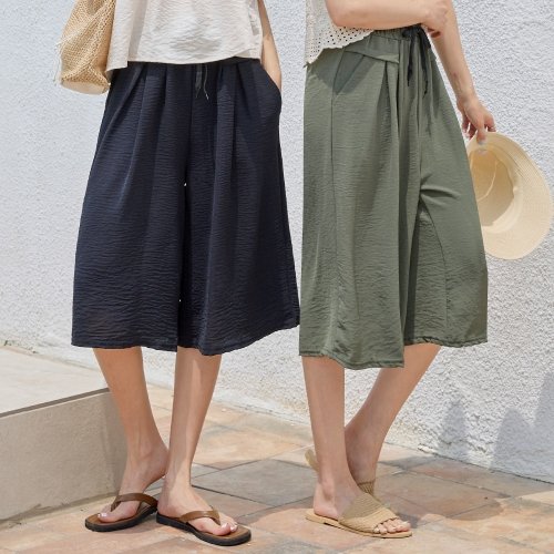 [크로벨디]구김없이 시원한 핀턱7부 와이드팬츠
