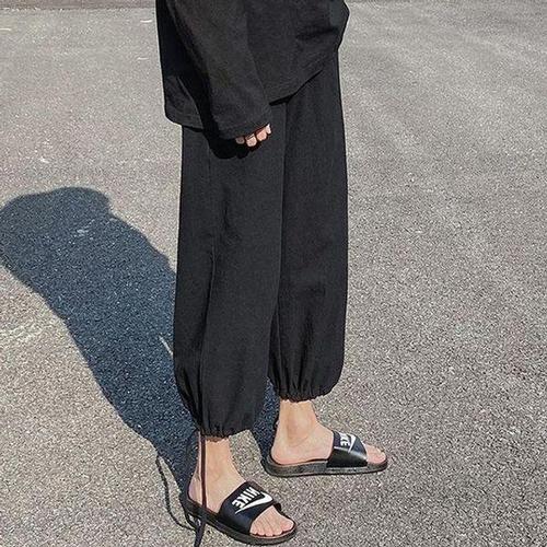 [에이치플러스몰]스트링 조절 7부 밴딩 와이드 조거팬츠