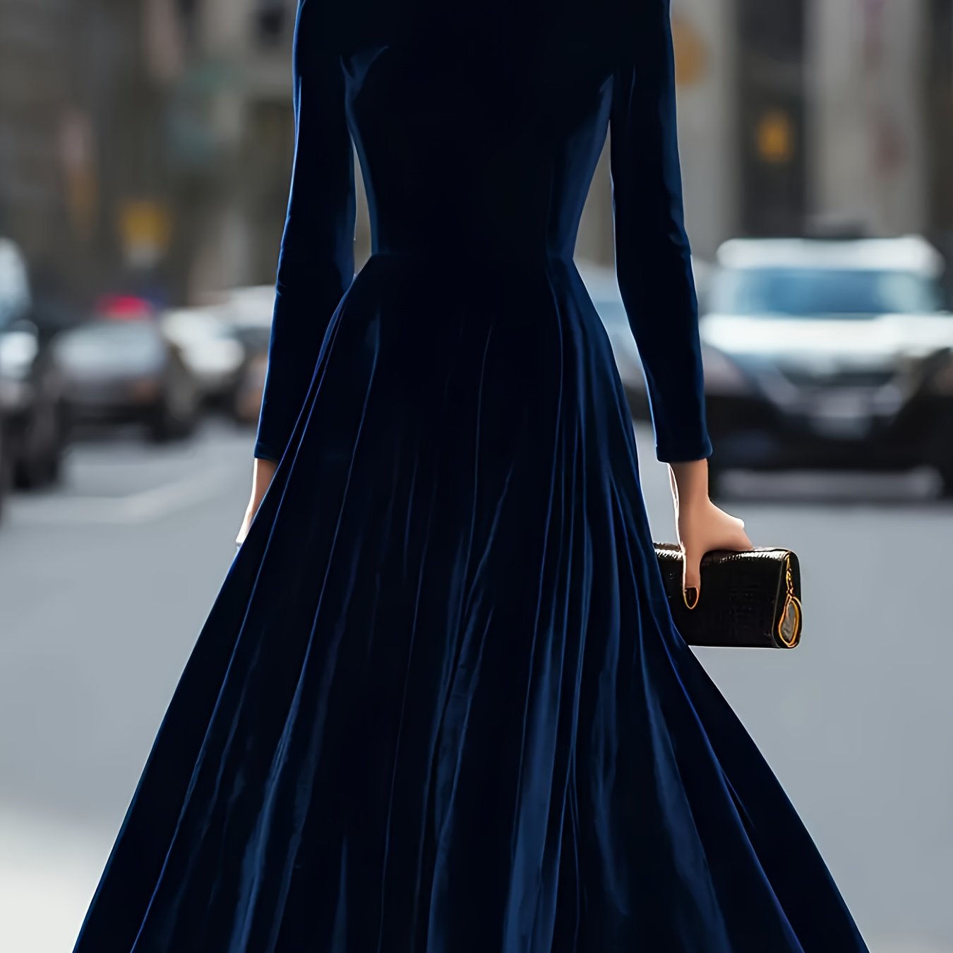 TEMU 여성용 우아한 네이비 블루 & 버건디 웨딩드레스 - 지퍼백, 라운드넥 핏감의 긴 포멀 파티 가운, 가을 겨울 웨딩드레스 (프롬, 갈라, 특별한 행사용) (손세탁 불가)|가을원피스