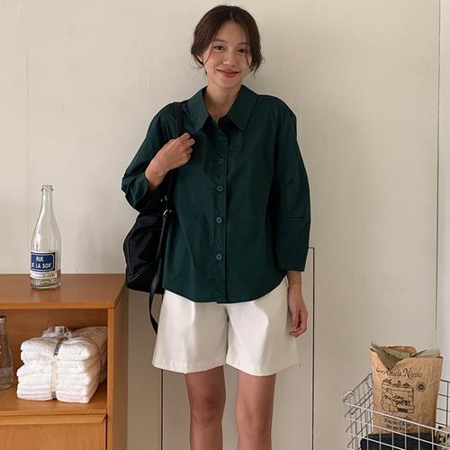 [옷자락]여성 뒷단추 깔끔 베이직 8부 데일리 셔츠 남방
