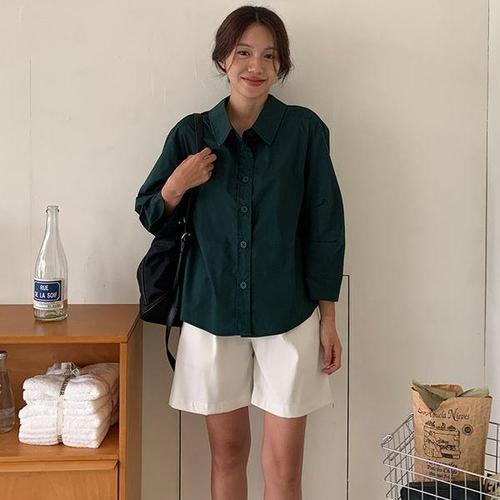 여성 뒷단추 깔끔 베이직 8부 데일리 셔츠 남방