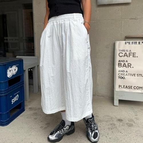 [옷자락]여성 남성 핀턱 와이드 8부 반바지 바스락 밴딩 팬츠
