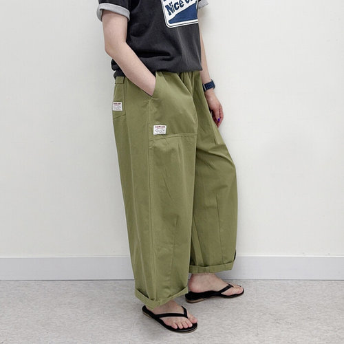 미즈큐즈 / 패치 벌룬 핀턱 9부 밴딩 면바지 와이드 팬츠 빅사이