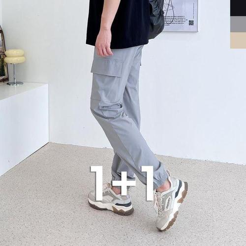 [에이치플러스몰]남자 밴딩 9부 스트릿 남성바지 5부 밴딩팬츠 슬림