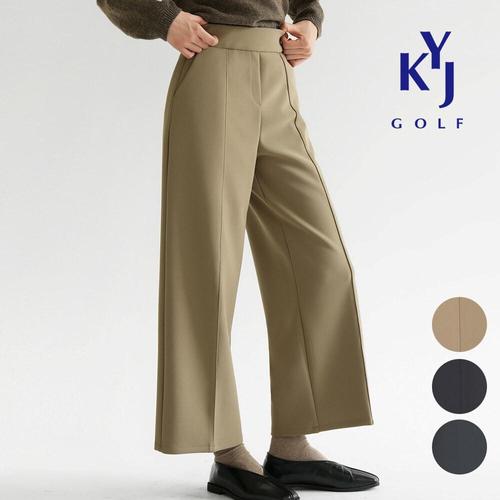 [김영주골프]가을겨울 와이드핏 핀턱 9부 슬랙스 속밴딩 스판 여성 골프바지 DPFLSL70