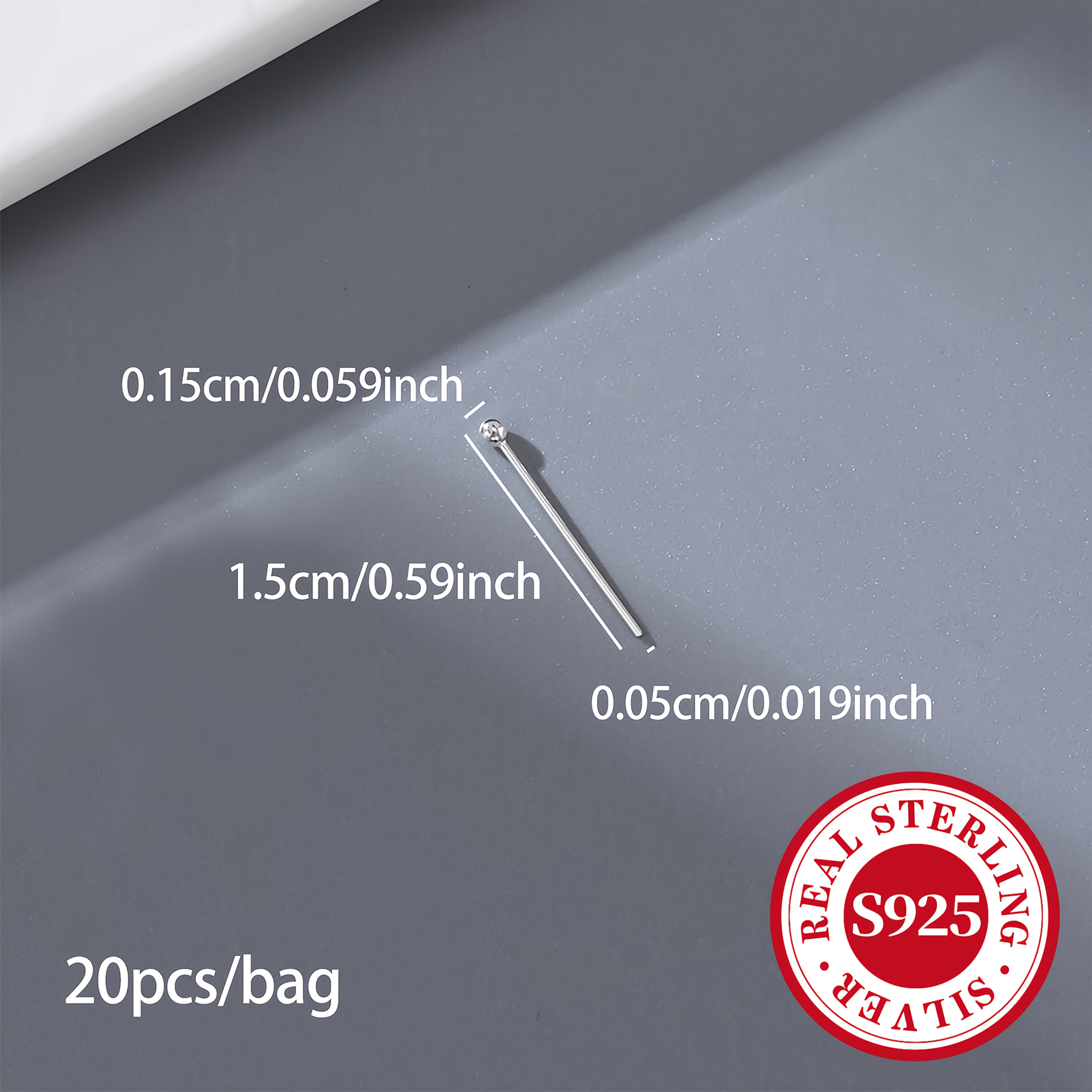 TEMU 20개 세트 S925 순 925 실버 볼 핀 라운드 헤드 길이 15/20/25/30/35mm 수제 DIY 비즈 팔찌 목걸이 펜던트 귀걸이 액세서리