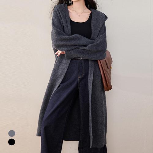 호정샵 여성용 간절기 라운드넥 오픈형 기본핏 A라인 봄 가을 니트 가디건