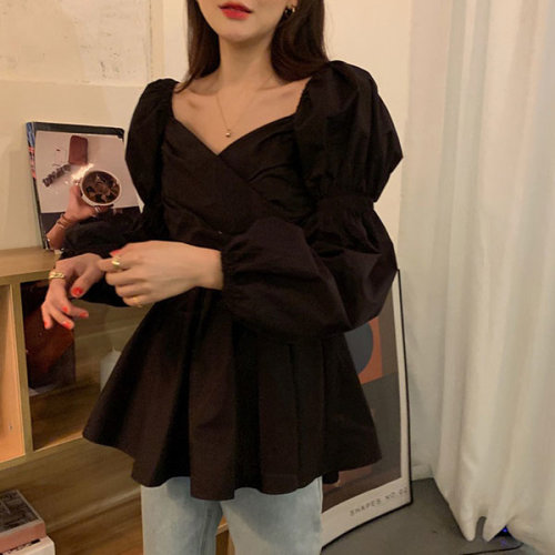 슈팅스타 / 브이넥 퍼프소매 A라인 여성스러운 블라우스