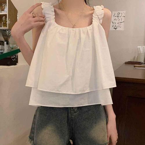 [모노무드]모노무드 프릴 나시 블라우스 민소매 여름 여성 A라인 크롭기장