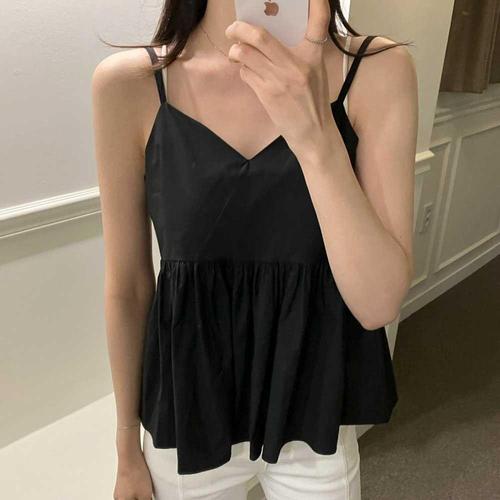 [셀러허브_여성트랜드패션]ONM A라인 루즈핏 민소매 블라우스 탑 브이넥 스파게