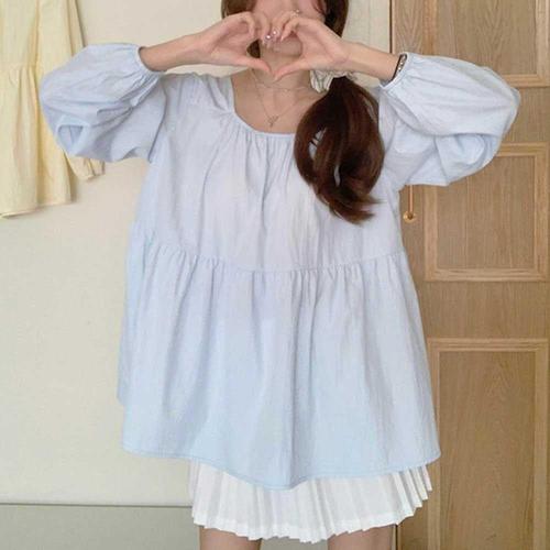 [모노무드]모노무드 스퀘어넥 어깨셔링 블라우스 A라인핏 중간셔링 캐주얼