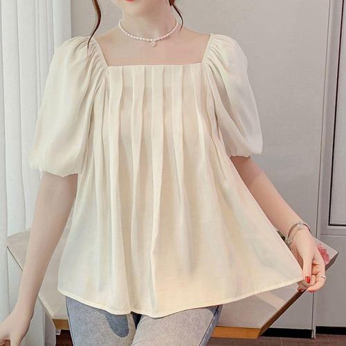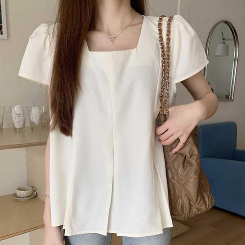 [모노무드]모노무드 앞 셔링 주름 쉬폰 블라우스 스퀘어넥 A라인 여친룩