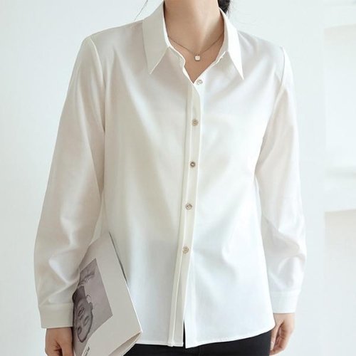 [패션에비뉴]유니크버튼라인 솔리드 셔츠블라우스 26668B9A