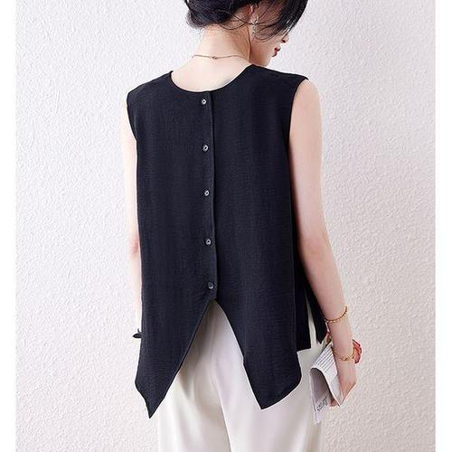 [패션시그널]유니크 백버튼라인 민소매 블라우스 A9247F