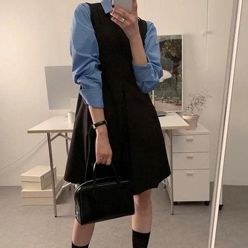 besteffie 여성용 원피스 봄 가을 간절기 루즈핏 A라인 가을 칼라넥 20대 30대 원피스 E58