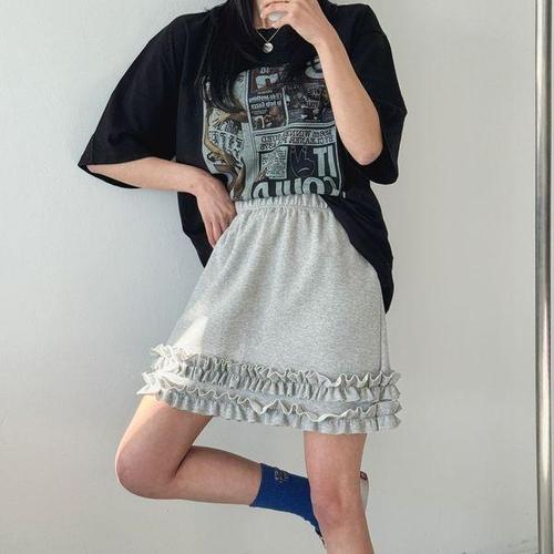 [옷자락] 여자 러블리 프릴치마 코튼 밴딩 A라인 캉캉 미니스커트
