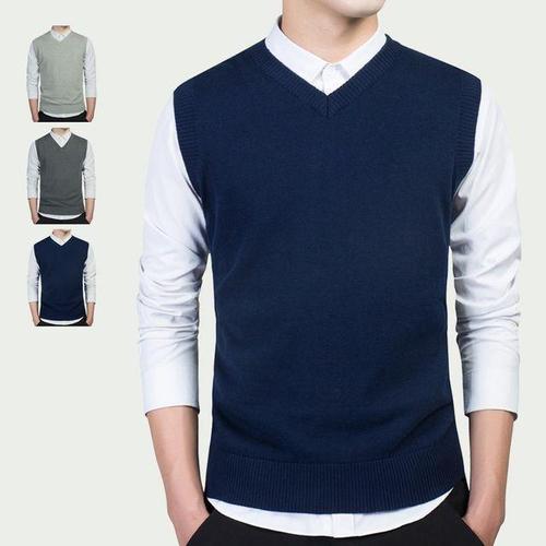TEMU 우아한 남성용 스트레치 울 조끼, 캐주얼 빈티지 스타일 V넥 스웨터 조끼, 가을 겨울 추위 방지 및 보온, 패셔너블 캐주얼 민소매 V넥 풀오버 스웨터, 남성 의류