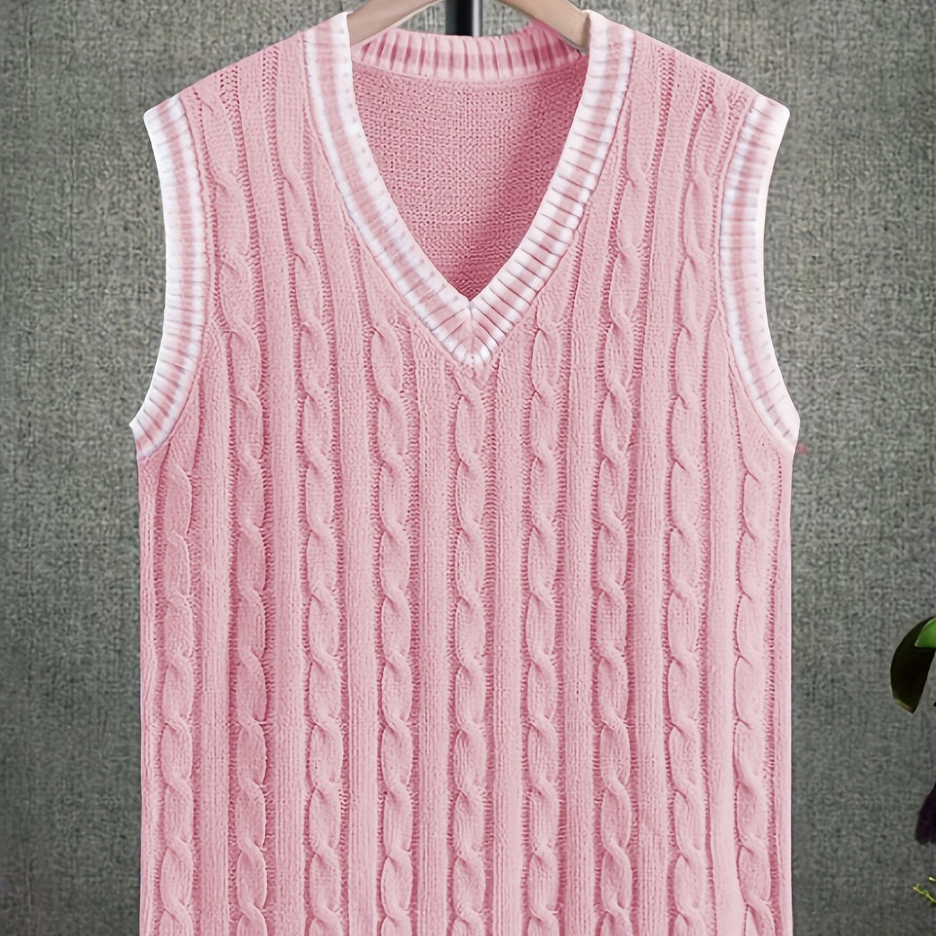 TEMU 남성용 세로 두꺼운 V넥 니트 풀오버 조끼