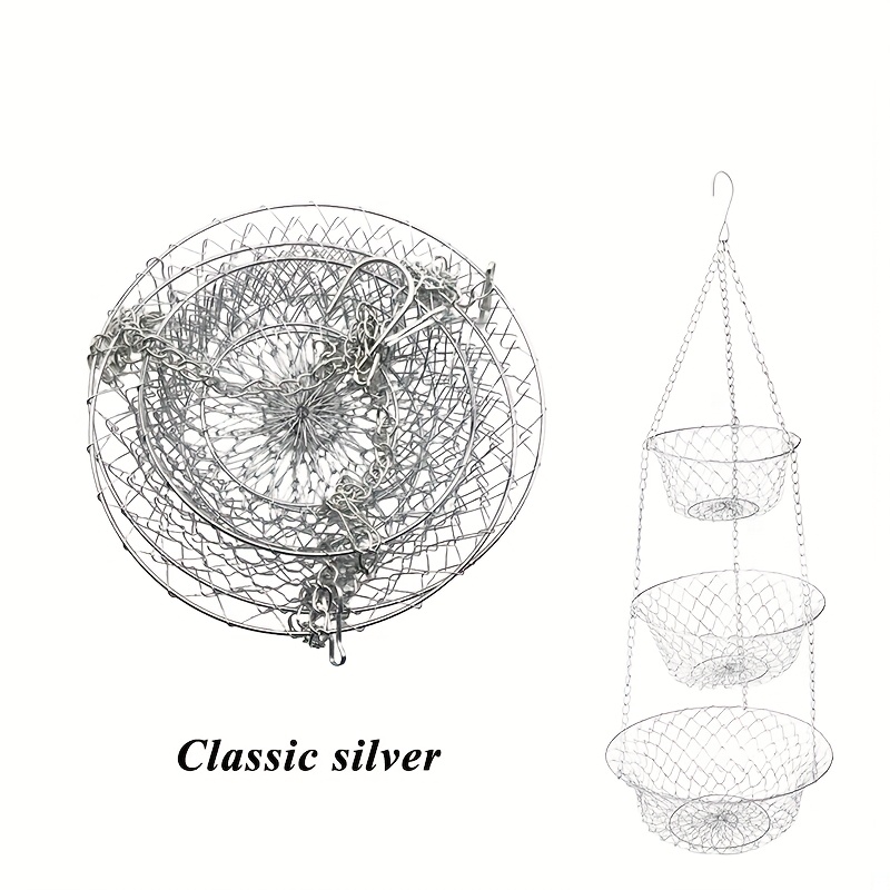 TEMU 3단 수납 바구니 걸이 바구니 과일 바구니 채소 보관 걸이 바구니 철망 바구니 접이식 과일 바구니 방 수납 장식, 주방, 거실 및 욕실 다양한 수납 장식에 적합, 금속 과일 바구니, 금속 바구니, 주방 정리 및 수납, 주방 액세서리, 주방용 과일 바구니, 채소 보관 랙, 걸이 바구니 수납