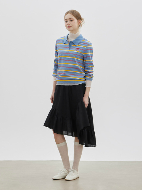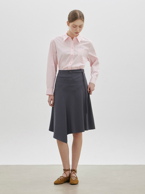 [씨씨콜렉트] 언밸런스 헴 스트라이프 스커트 GR_C262MSD033