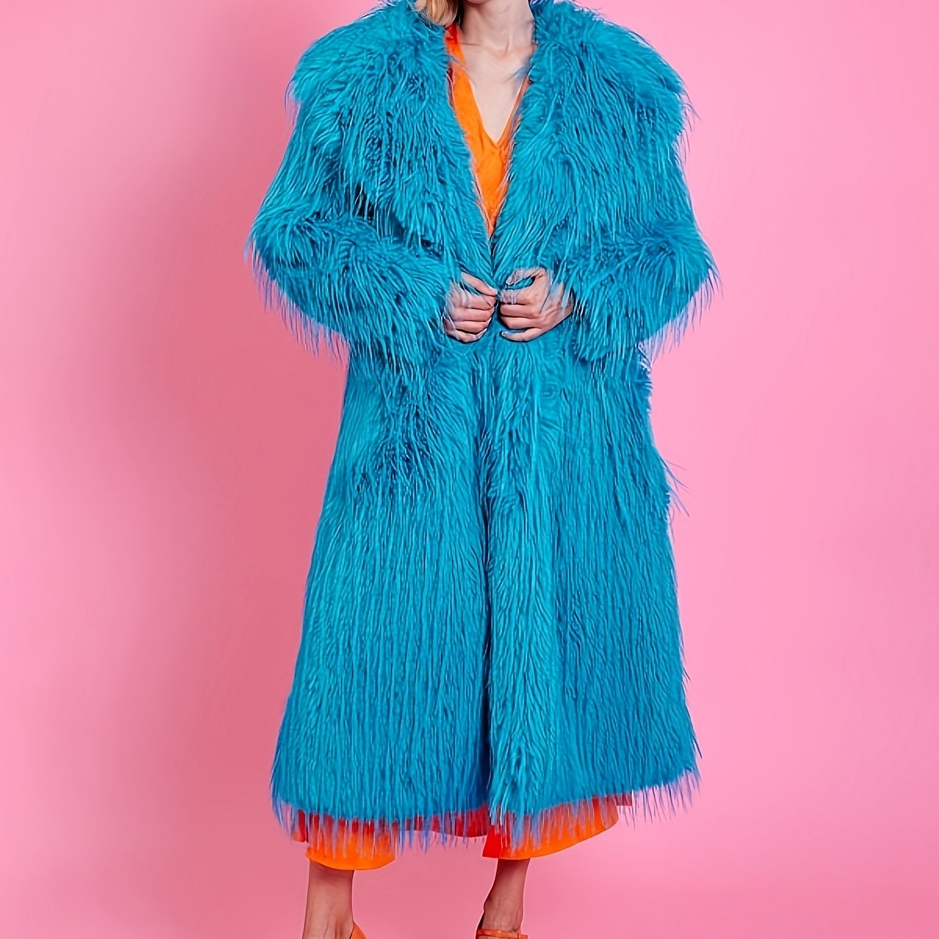TEMU GUYUN 브랜드 패션 엘레강스 인조 퍼 코트, 미디엄 기장 긴 소매 고품질 원단 따뜻한 겨울 코트