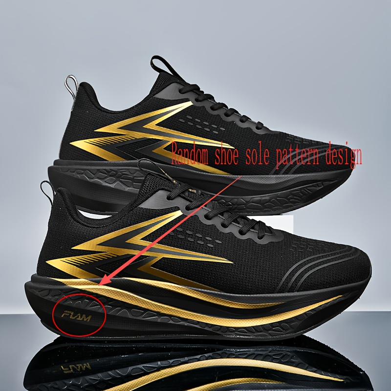 TEMU 남성용 플라잉 플레임 4.0 카본 플레이트 레이싱 슈즈 - 로우탑 스피드 러닝 스니커즈, 풀 팜 카본 파이버 기술, 통기성 EVA 쿠션 & 아치, 가벼운 트레이닝, 체육관, 마라톤용 스니커즈 - 사계절 퍼포먼스 (블랙/골든) - 레이스업 클로저, 인체공학적 핏, 충격 흡수, 다이내믹 안정성, 세련된 블랙 & 골든 디자인, 남성용 러닝화