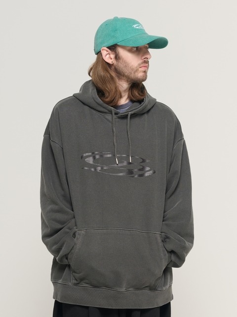 [카고브로스] CRACK CIRCLE LOGO PIGMENT HOOD T-SHIRT (CHARCOAL)