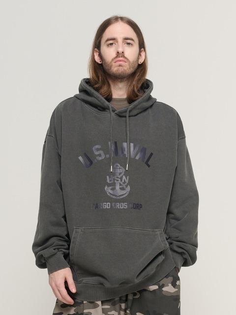 [카고브로스] USN MARINE PIGMENT HOOD T-SHIRT (CHARCOAL)