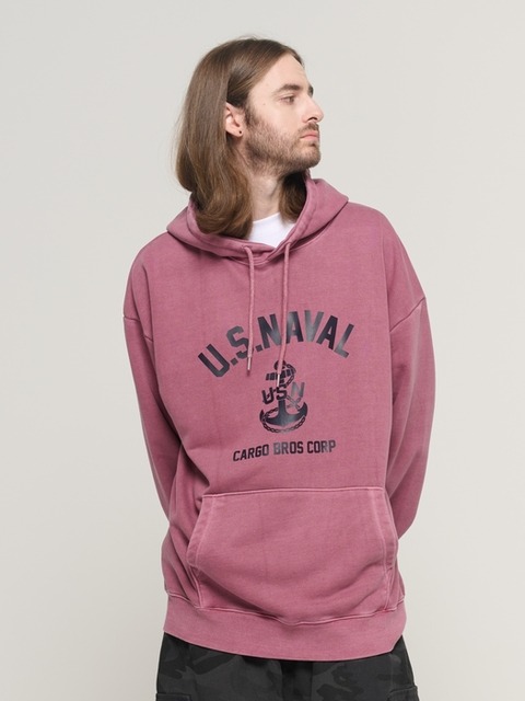 [카고브로스] USN MARINE PIGMENT HOOD T-SHIRT (BURGUNDY)