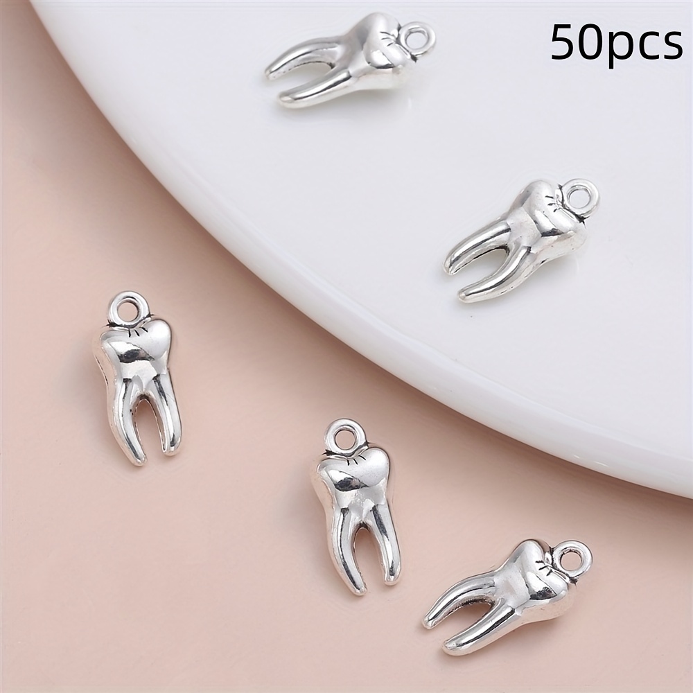 TEMU 50개 세트의 스타일리시한 금속 이빨 참 작은 펜던트, 독특한 주얼리 만들기, 목걸이, 팔찌, 열쇠고리, 휴대폰 체인, 창의적인 다기능 만들기 필수품 - 다양한 클래식 종류, DIY 프로젝트 및 기념품 아이디어에 매우 적합