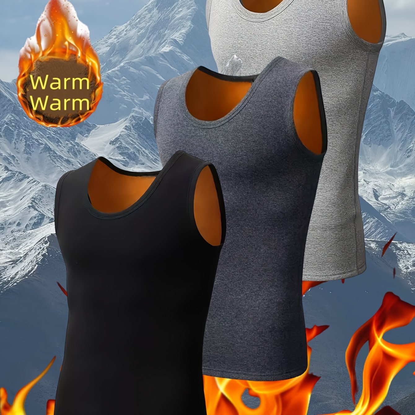 TEMU 남성용 타이트 3종 조끼, 플리스 보온 이너웨어 사계절형, Athleisure 두꺼운 탑