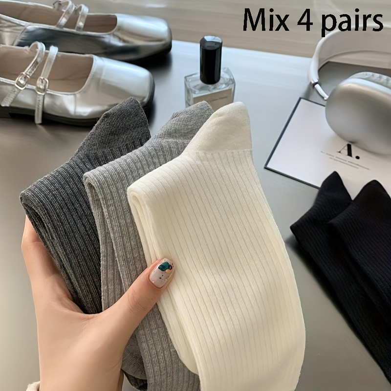 TEMU 6 쌍 또는 4 쌍의 새로운 가을과 겨울 앵고라 양말, 3 쌍의 줄무늬 트렌디한 슬러시 양말, 인스타그램에서 인기가 많음, 부드럽고 다재다능한 중간 발목 여성용 양말.
