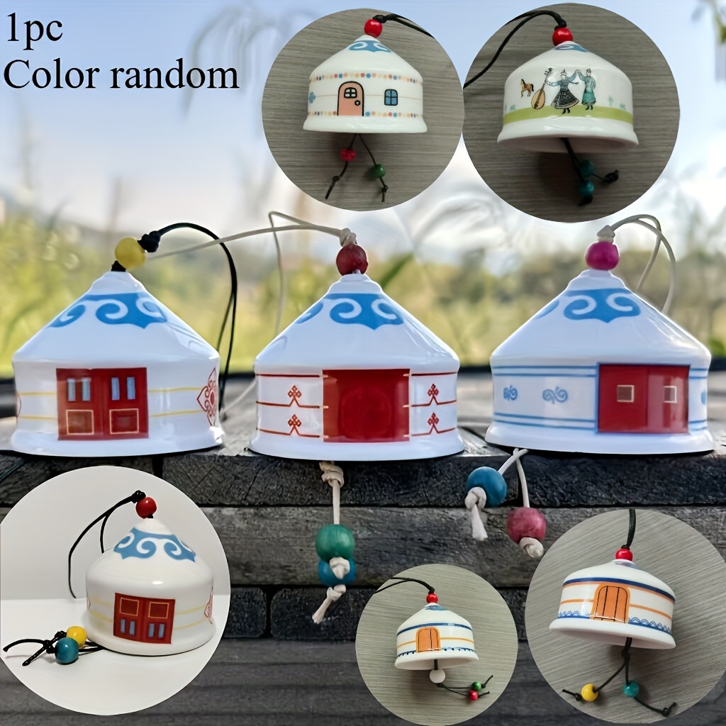TEMU 2D 평면, 중국 스타일의 몽골 요르트 세라믹 바람 주름 - 전통적인 내몽골 소품 선물, 손수 제작된 야외 장식, 다양한 색상의 비즈와 프린트, 전기 필요 없음, 야외용 바람 주름