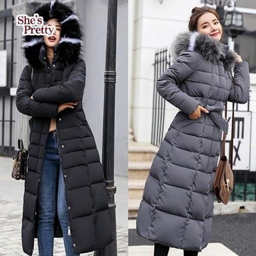 [쉬즈프리티]스노우슬림라인허리벨트롱패딩