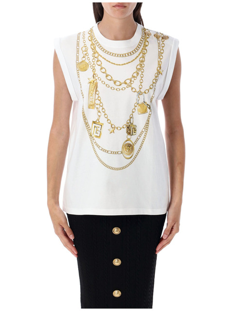 25 FW 발망 체인 프린트 탱크 탑 FF1ED004GE99EAD TP440754387