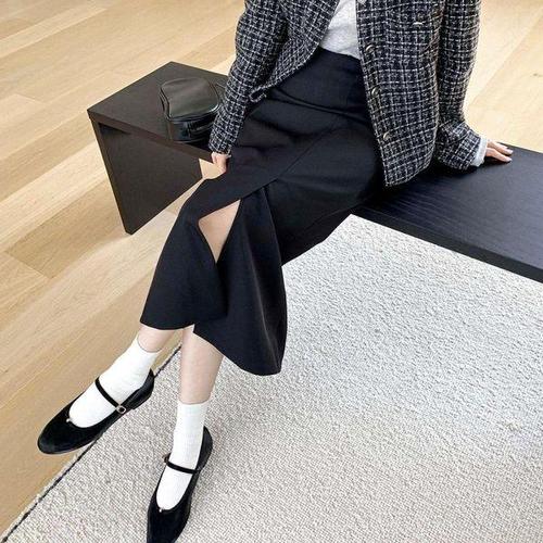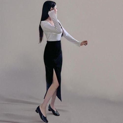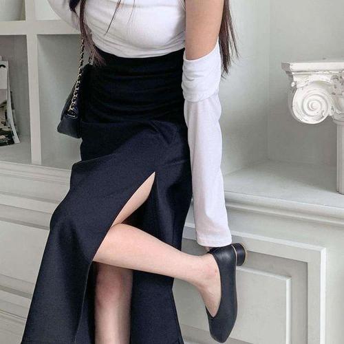 [신상오픈런]여성 레이온 스판 H라인 사이드 트임 롱 스커트