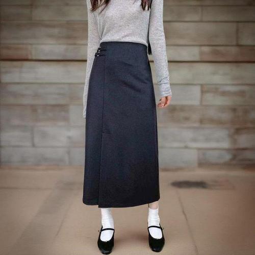 [신상오픈런]여성용 스판 H라인 랩 스타일 롱 스커트 버클 디자인