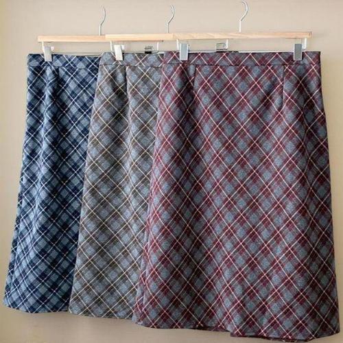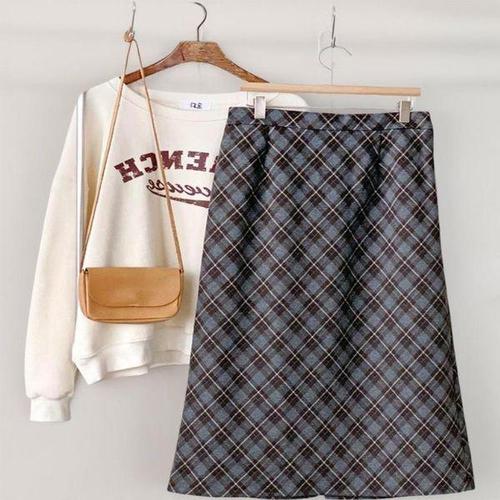 [신상오픈런]여성 체크 배색 H라인 롱 스커트 뒷트임 디자인