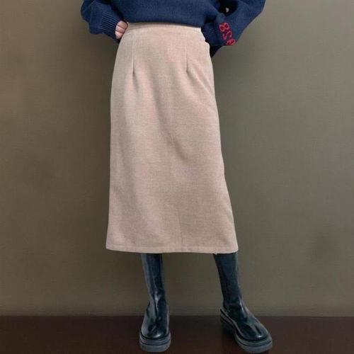 JIEVE 여성용 가을 겨울 모직 하이웨이스트 H라인 롱 스커트 패션 슬림핏 미디스커트 D18