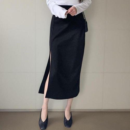 양놀 오피스룩 뒷트임 스판 H라인 롱 스커트