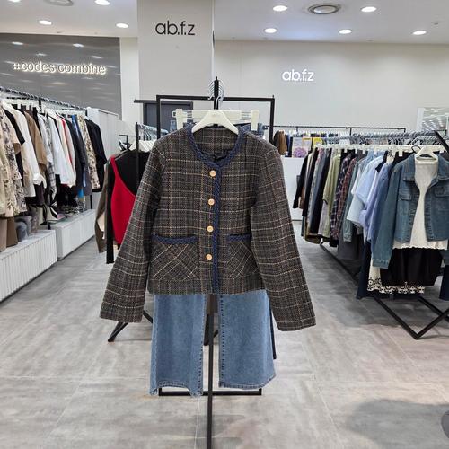 [ab.f.z]AFZ4NJ01/도톰하고 멋스런 체크 라인 배색 트위드 루즈핏 숏 자켓_IC