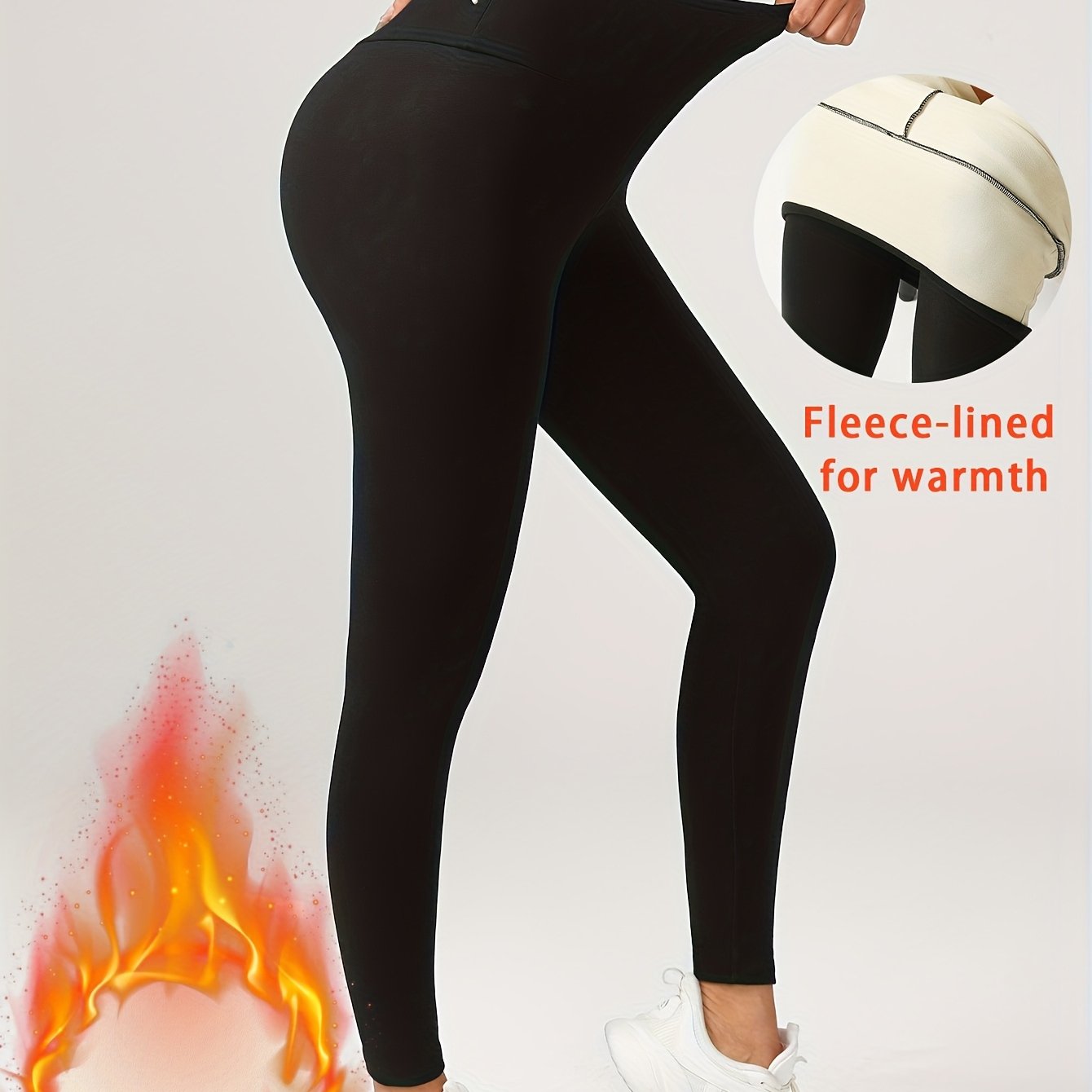 TEMU 여성용 하이웨이스트 보온 레깅스 - 플리스 안감의 두꺼운 겨울 바지, 신축성 있는 요가 & 헬스장 바지, 추운 날씨용, 미끄럼 방지, 세탁기 사용 가능 - 가을/겨울용 우아한 운동 & 캐주얼 바지, 겨울 레깅스, 가을 겨울 의류