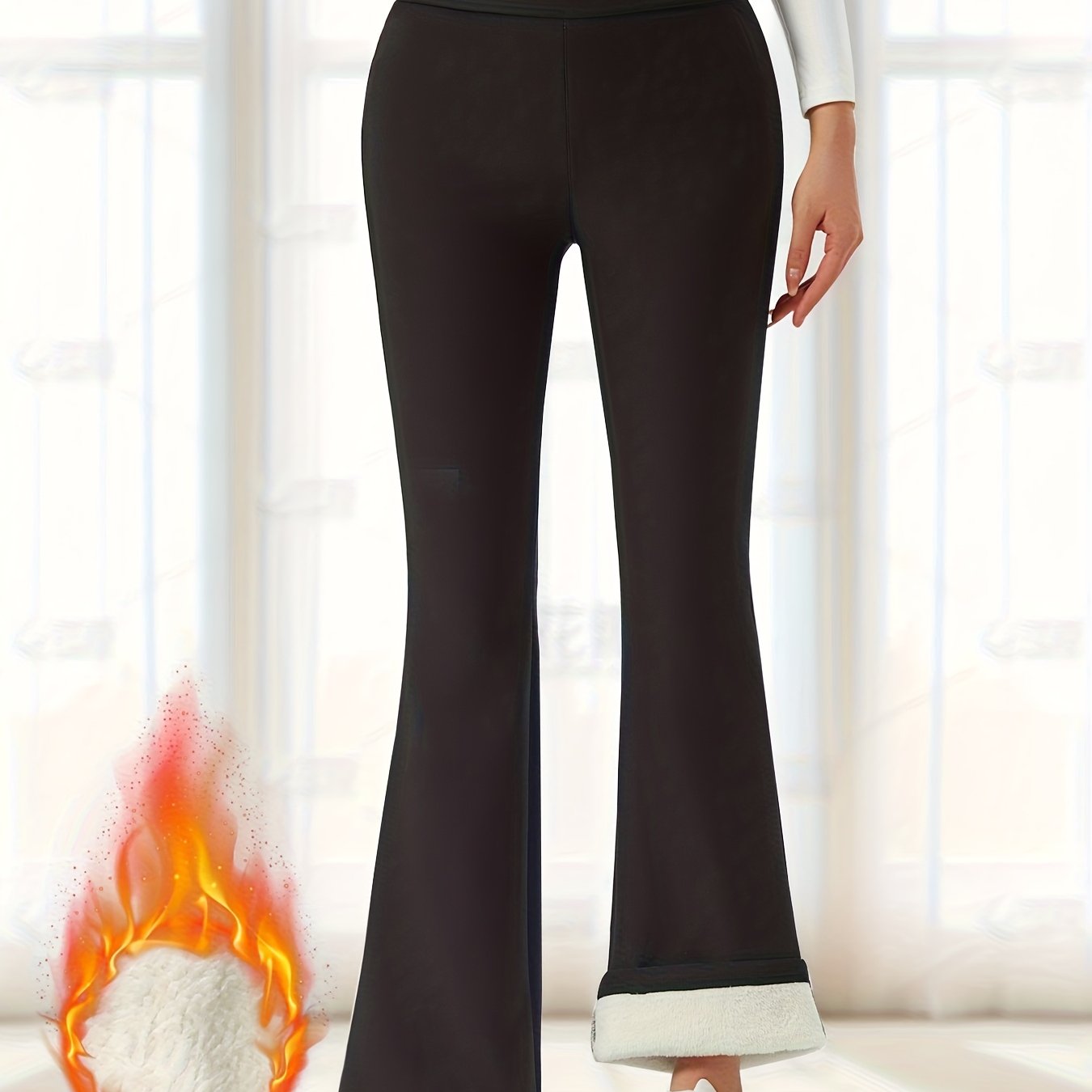TEMU 여성용 하이웨이스트 겨울용 따뜻한 플레어 팬츠 - 두꺼운 보온 탄력 허리밴드, 추운 날씨용 블랙 스트레치 레깅스, 캐주얼 및 세미포멀 의상, 손세탁 가능, 베이스 레이어 팬츠,반정장 복장,여성용 스트레치 팬츠,단열 바닥, 디자인,플레어드 레그,두꺼운 소재,신축성 있는 원단,추운 기후 거주자